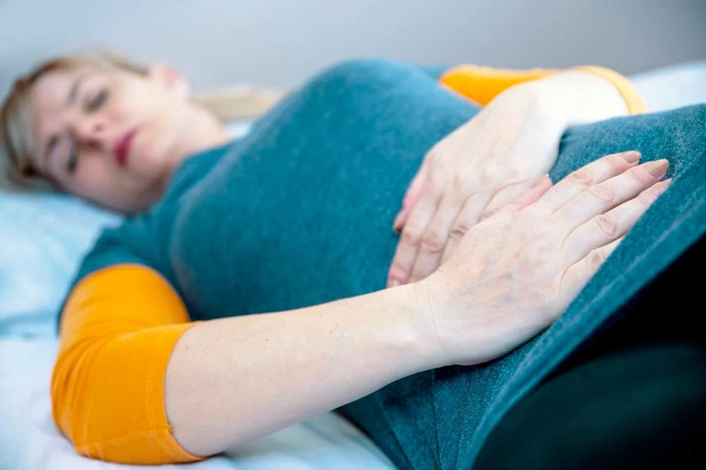 - Bauchschmerzen: Die Schmerzen können krampfartig oder dumpf sein und können im Unterbauch oder im Rücken auftreten.