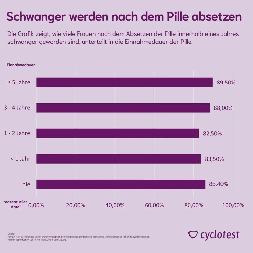 • Dauer der Pilleneinnahme: Je länger die Pille eingenommen wurde, desto länger kann es dauern, bis die Fruchtbarkeit wiederhergestellt ist.