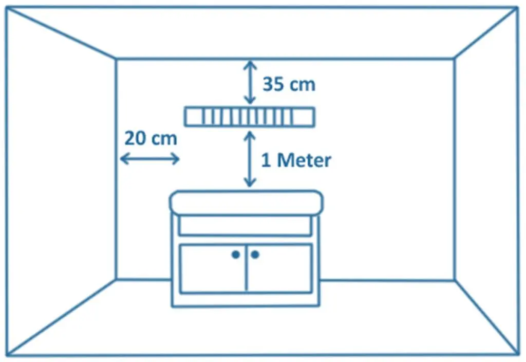 - Raumtemperatur: In einem warmen Raum kann ein größerer Abstand eingehalten werden als in einem kühlen Raum.