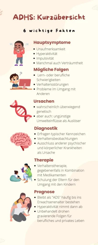 - Symptome beeinträchtigen die Lebensqualität: Die Symptome von ADHS müssen die Lebensqualität des Kindes beeinträchtigen, z. B. In der Schule, im Sozialleben oder in der Familie.