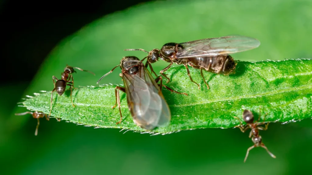 Die meisten Ameisenarten erleben im Frühling einen eindrucksvollen Hochzeitsflug. Dieser Flug dient der Paarung und ist essenziell für die Fortpflanzung der Ameisen. Die Weibchen, die nach der Begattung als Königinnen bezeichnet werden, empfangen dabei Millionen von Samenzellen der Männchen. Diese speichern sie in einer speziellen Samentasche, die sie für mehrere Jahre, in manchen Fällen sogar über 20 Jahre, versorgt. Dieser Vorrat an Samenzellen ist für die Königin lebensnotwendig, da sie die einzige in der Kolonie ist, die Eier legen kann. Die Arbeiterinnen, die die Mehrheit der Kolonie ausmachen, sind unfruchtbar.