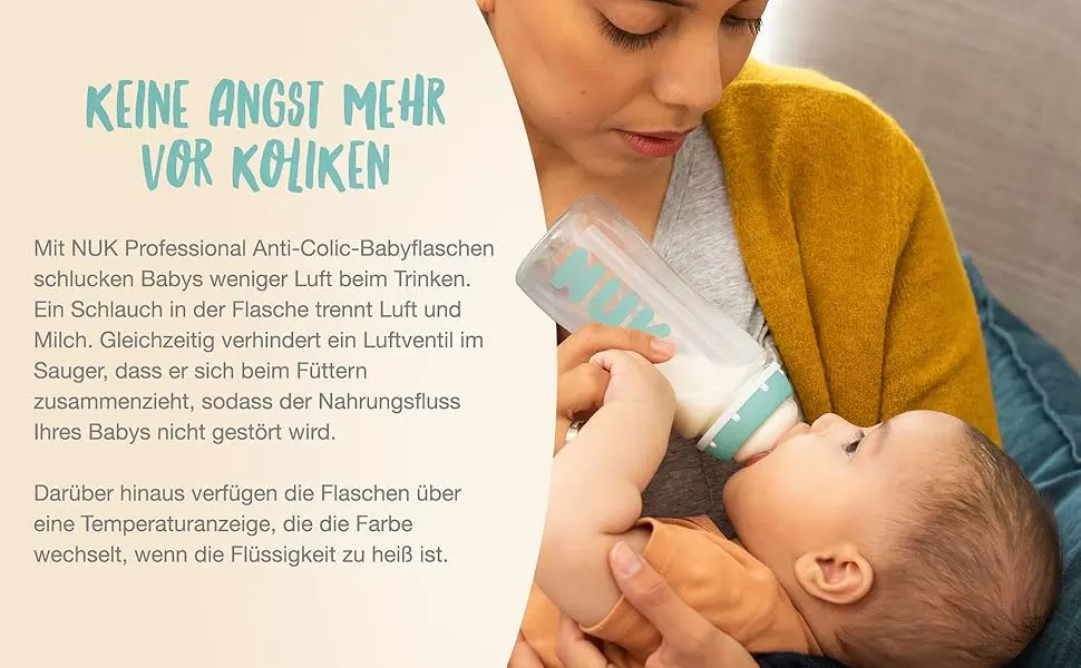 - Mehr Flexibilität: Anti-Kolik-Flaschen ermöglichen es dem Baby, in verschiedenen Positionen zu trinken, z. B. In aufrechter Position.