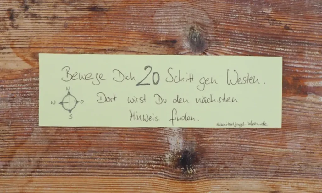 Die Hinweise führen die Teilnehmer von Station zu Station. Sie sollten gut versteckt sein und gleichzeitig leicht zu finden sein.