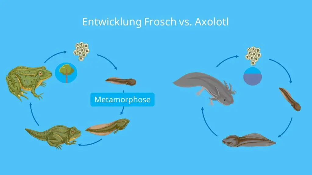 Eine der auffälligsten Eigenschaften des Axolotl ist seine Neotenie. Dieser Begriff beschreibt den Zustand, in dem ein Tier seine Larvenmerkmale bis ins Erwachsenenalter beibehält. Axolotl bleiben ihr ganzes Leben lang in ihrer Larvenform und entwickeln sich nicht zu Landtieren. Dies ist auf einen Mangel an Schilddrüsenhormonen zurückzuführen, die für die Metamorphose verantwortlich sind. Durch die künstliche Zugabe von Schilddrüsenhormonen können Axolotl jedoch zur Metamorphose angeregt werden, wodurch sie ihre äußeren Kiemen verlieren und ein Aussehen wie ein gewöhnlicher Schwanzlurch annehmen. Allerdings verkürzt sich ihre Lebensdauer in diesem Fall deutlich.
