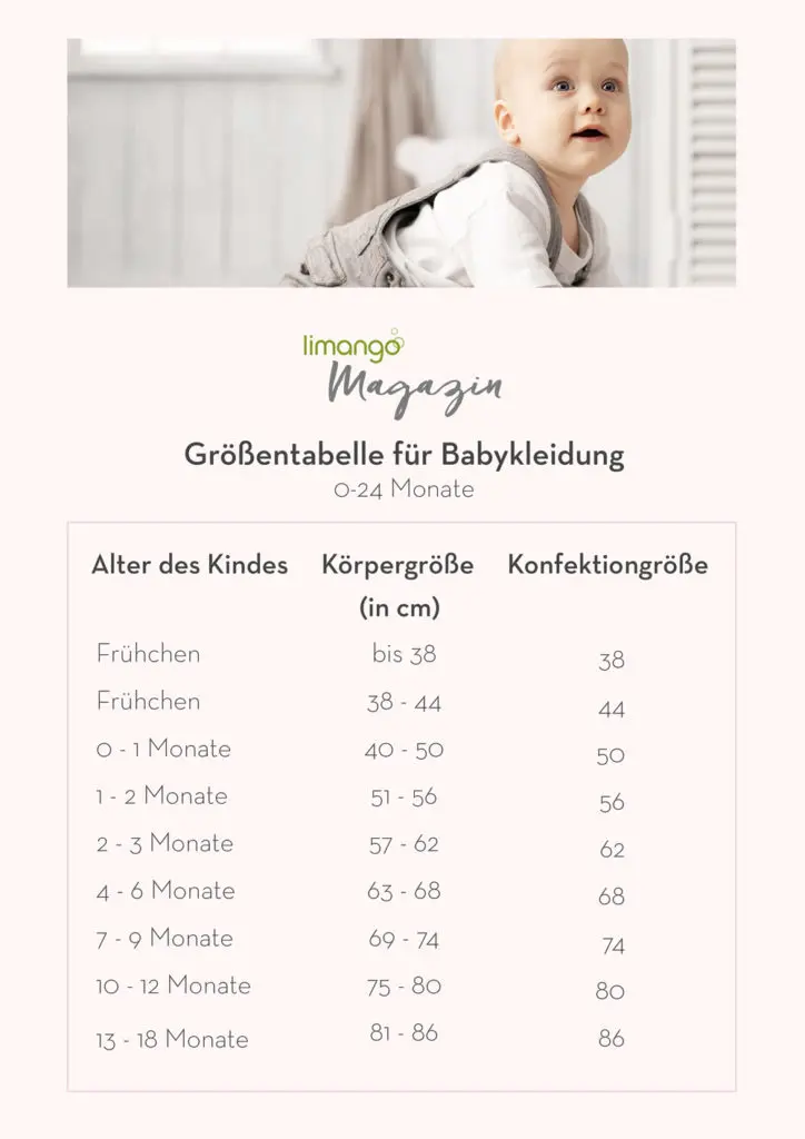 Hier eine Übersicht über die gängigsten Babygrößen: