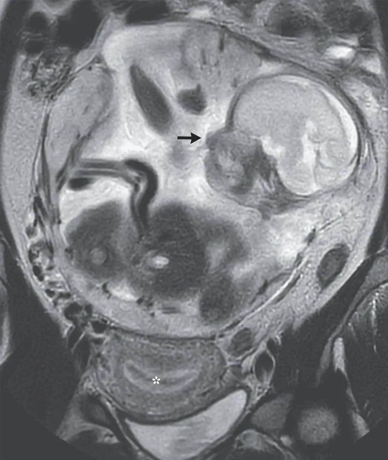• Schwangerschaftswoche: Der Magen, der Dünndarm und der Dickdarm sind klar erkennbar.