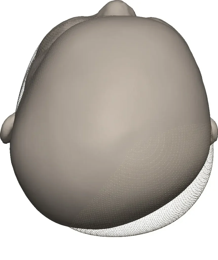 Der Original-CRANIOfORM®-Helm, der in der Regel bei der Helmtherapie eingesetzt wird, liegt an den prominenten Stellen des Kopfes an. An den abgeflachten Stellen lässt er ausreichend Platz für das die Deformität ausgleichende, natürliche Wachstum. Auf diese Weise lenkt der Helm den Kopf ganz ohne Druck sanft in seine naturgegebene Form.
