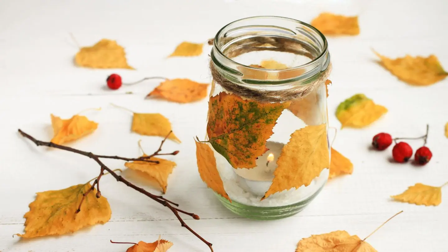 Gerade im Herbst ist es besonders schön, Dekorationen aus Naturmaterialien herzustellen. Hier zeigen wir Ihnen, wie Sie ein Windlicht mit Blättern verzieren:
