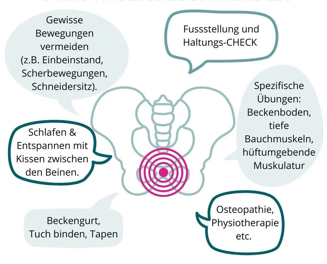 - Beckenbodentraining : Regelmäßiges Beckenbodentraining kann die Muskeln stärken und die Schmerzen lindern. Es gibt verschiedene Übungen, die Sie selbstständig durchführen können. Ihre Hebamme oder Physiotherapeutin kann Ihnen die richtigen Übungen zeigen und Sie dabei unterstützen.