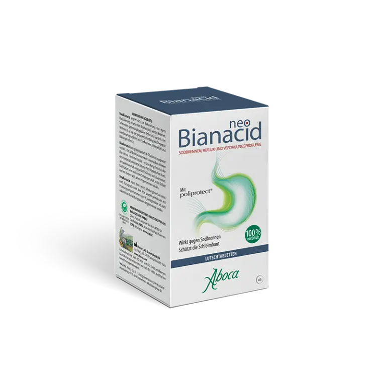 Bianacid enthält Poliprotect, einen Molekülkomplex, der die Schleimhaut des Magens und der Speiseröhre schützt. Poliprotect besteht aus Polysacchariden und Mineralien, die eine schützende Barriere auf der Schleimhaut bilden und sie vor Magensäure und anderen Reizstoffen schützen. Die antioxidativen Eigenschaften von Bianacid helfen außerdem, Reizungen durch freie Radikale entgegenzuwirken.