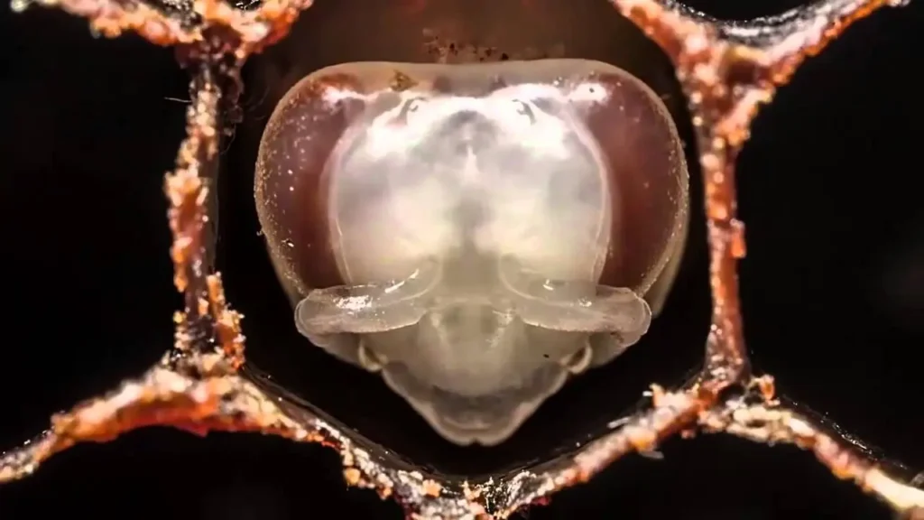 • Larve : Nach 3 Tagen schlüpft aus dem Ei eine Larve. Die Larve wird von den Arbeiterinnen mit einem speziellen Futtersaft gefüttert.