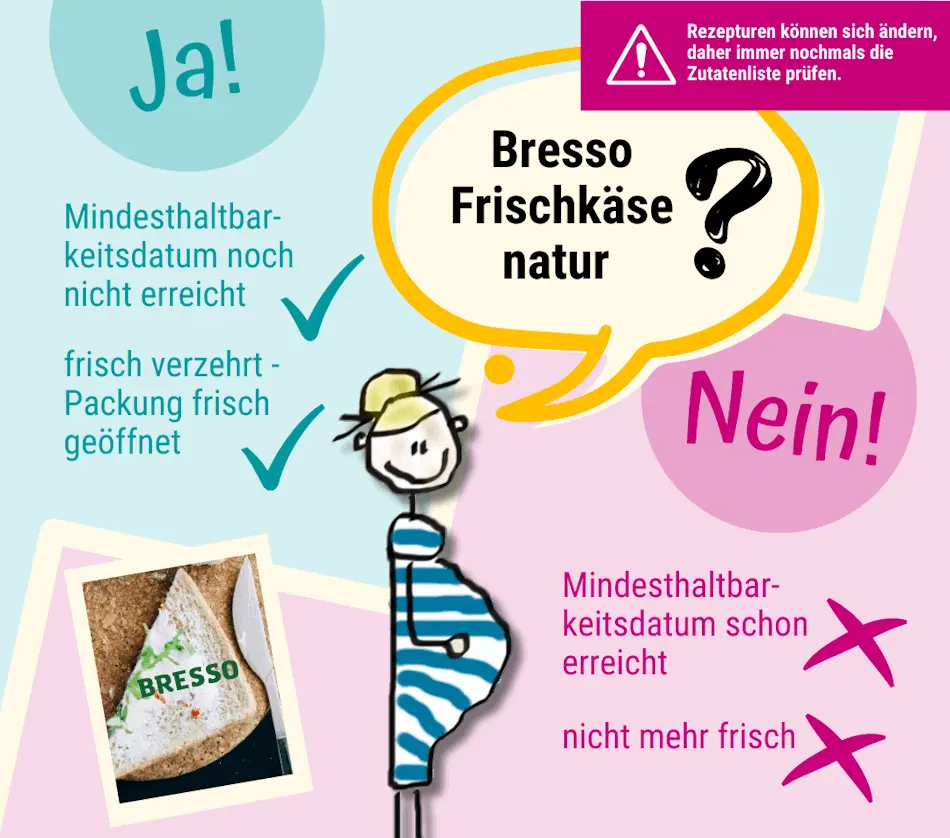 Obwohl Bresso aus pasteurisierter Milch hergestellt wird, gibt es dennoch einige Dinge, die Schwangere beachten sollten: