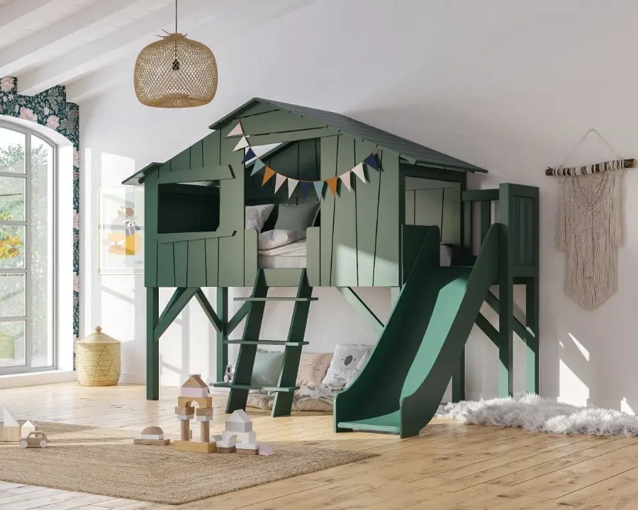 - Kinderbett mit Hausform: Diese Betten sind besonders beliebt bei Kleinkindern, da sie eine fantasievolle Atmosphäre schaffen. Die Betten haben meist eine Dachform oder ein Hausdach, die zum Spielen und Träumen anregen.
