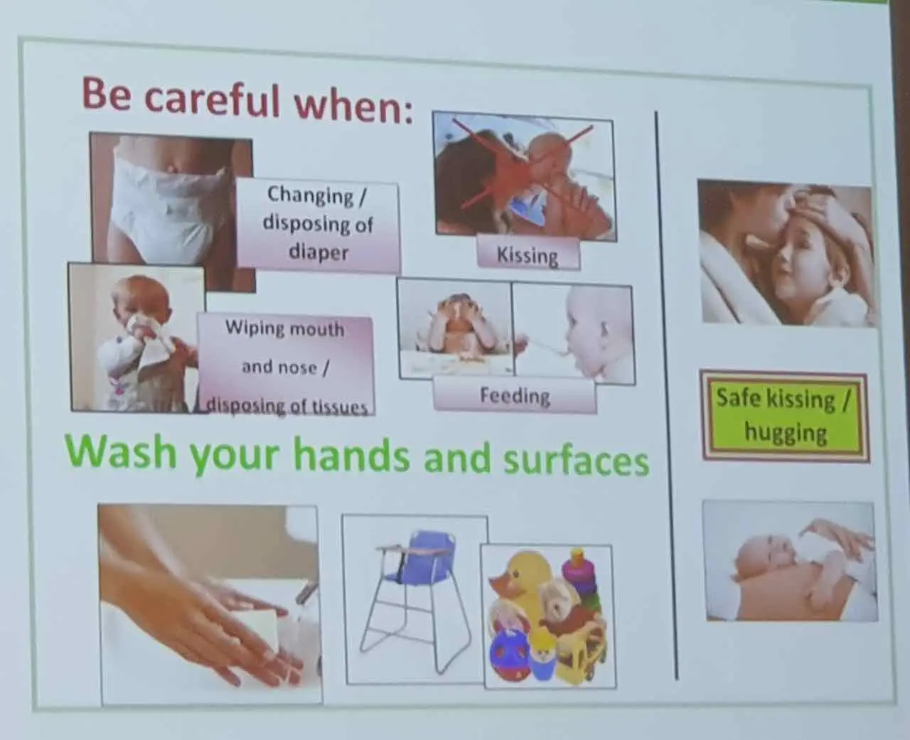 - Vermeidung von Kontakt mit Speichel: Vermeiden Sie es, sich mit dem Speichel von Kindern in Kontakt zu bringen. Küssen Sie Kinder nicht auf den Mund und lassen Sie sie nicht an Ihrem Gesicht lecken.