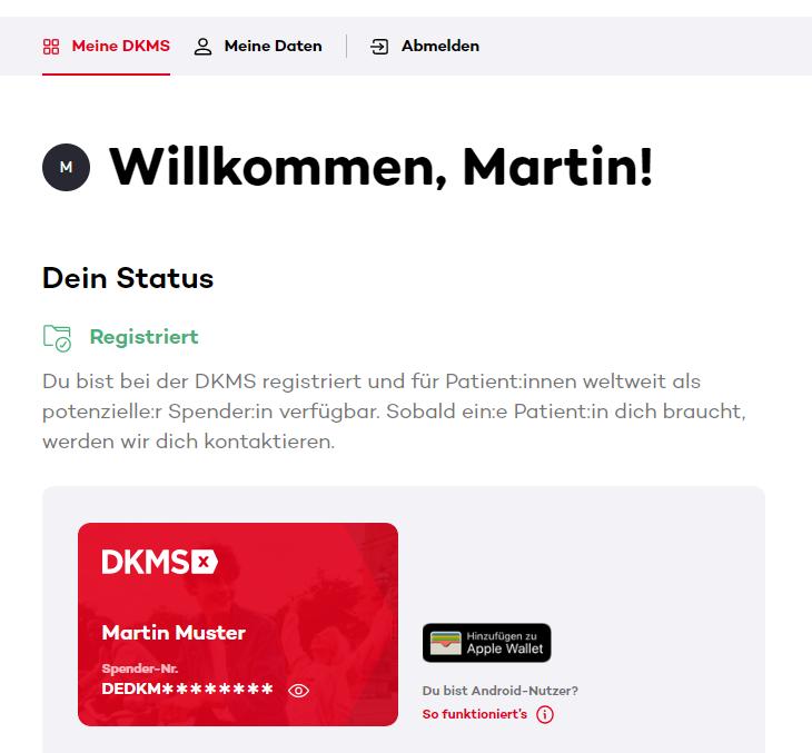 Sie bleiben bei der DKMS registriert, bis Sie sich selbst aus der Datenbank löschen lassen. Die Registrierung ist unbefristet. Allerdings werden Ihre Daten alle fünf Jahre aktualisiert. Sie erhalten dann eine neue Typisierungskarte und müssen Ihre Kontaktinformationen aktualisieren.