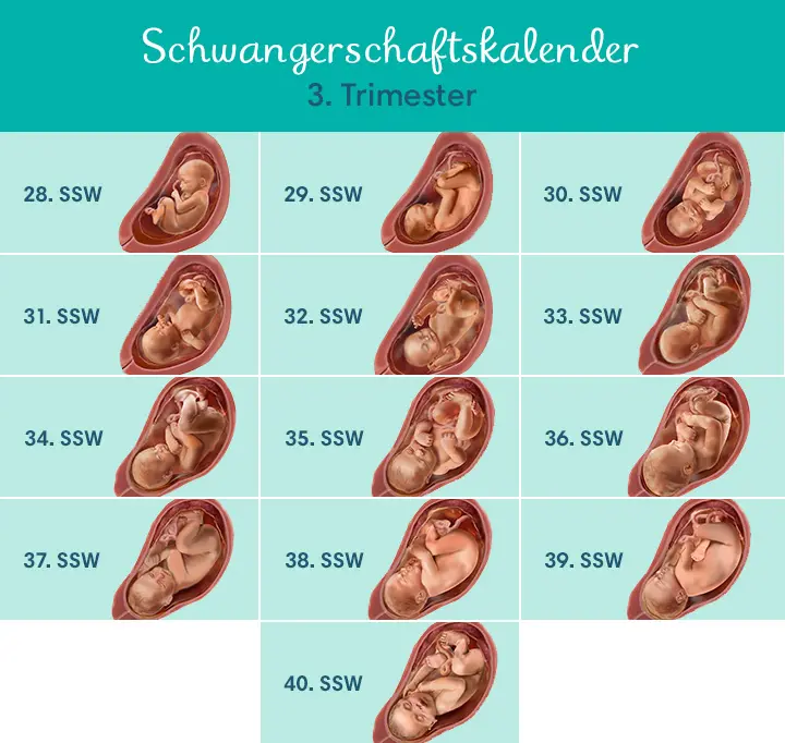 - Gewichtszunahme: In den letzten drei Monaten der Schwangerschaft nehmen Sie durchschnittlich 0,5 kg pro Woche zu.