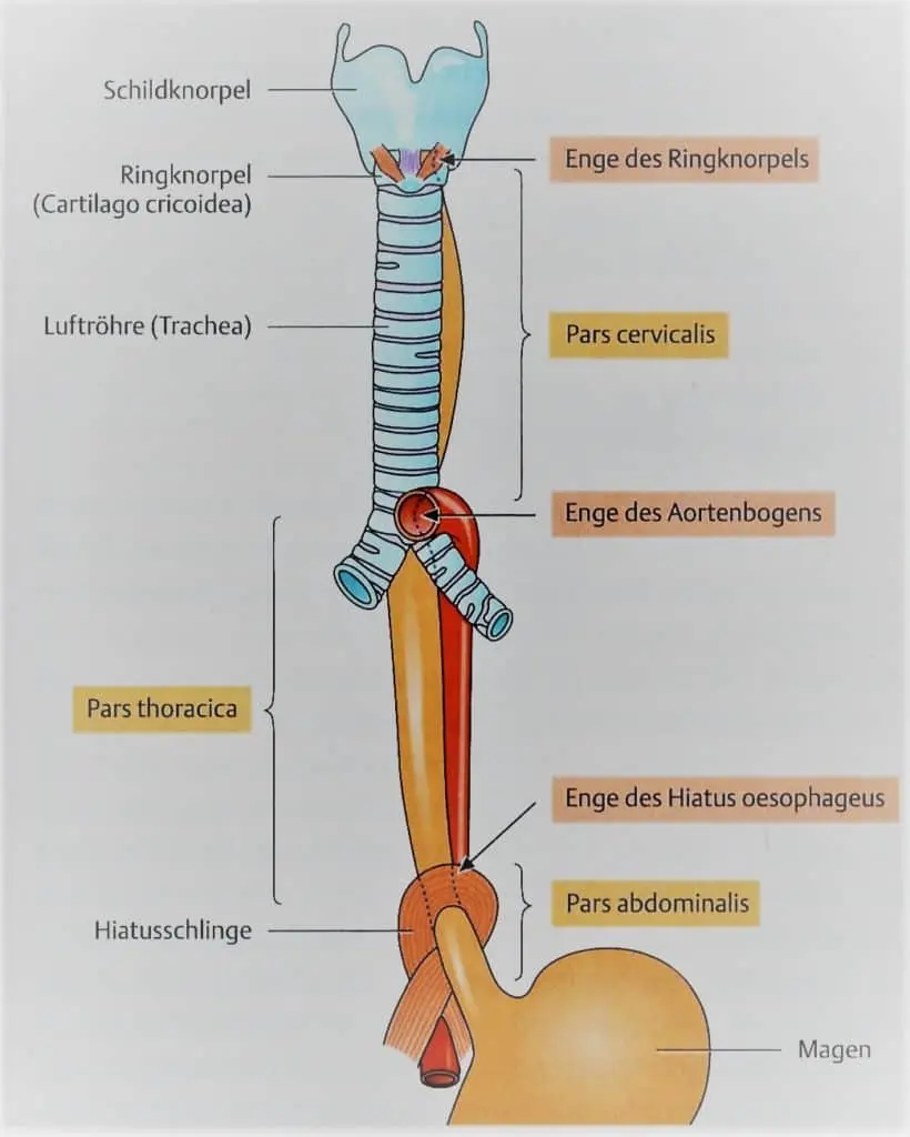 - Pars abdominalis : Der Bauchbereich, der bis zum Magenmund (unterer Ösophagussphinkter oder Cardia) reicht.