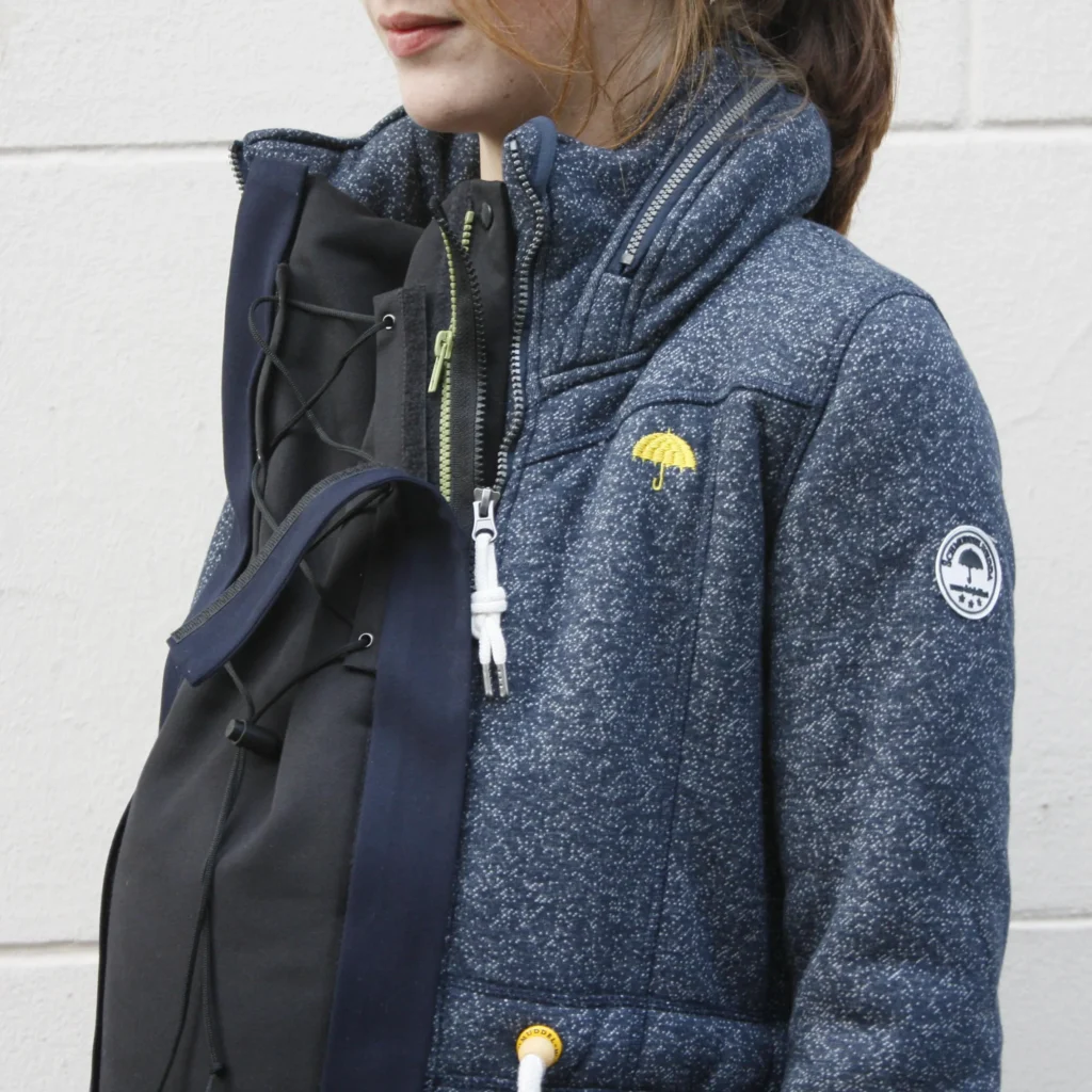 Sobald dein Baby auf der Welt ist, kannst du den Schwangerschaftseinsatz gegen den Babyeinsatz austauschen. So verwandelst du deine normale Jacke in eine praktische Tragejacke. Der Babyeinsatz bietet deinem Baby zusätzlichen Platz und schützt es vor Wind und Kälte.