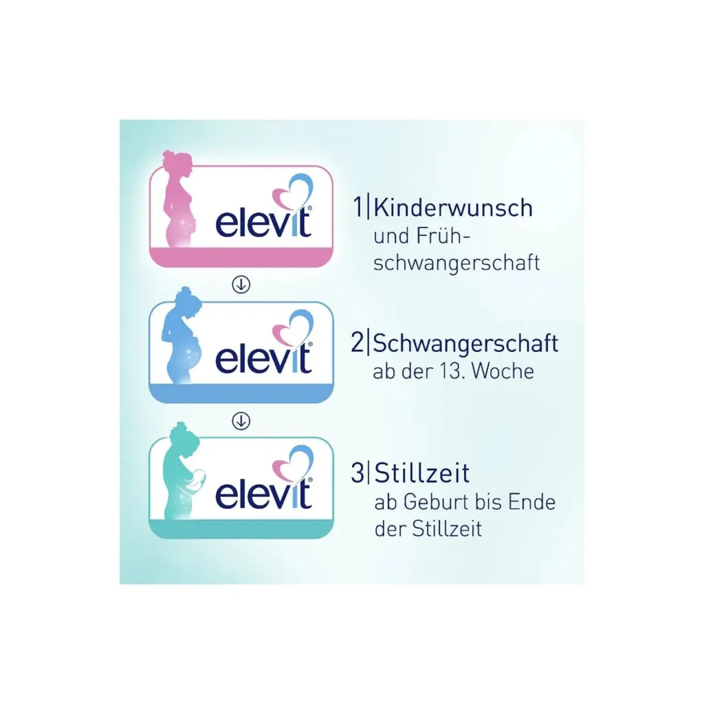 Nein, Elevit 3 ist speziell für die Stillzeit entwickelt und sollte nicht während der Schwangerschaft eingenommen werden. Für die Schwangerschaft gibt es Elevit 1 und Elevit 2, die speziell auf die Bedürfnisse der Mutter in den verschiedenen Phasen der Schwangerschaft abgestimmt sind.
