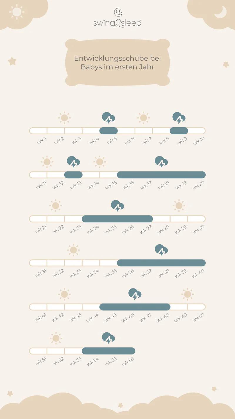 Entwicklungsschübe sind natürliche Phasen intensiven Wachstums und Lernens bei Kindern. Sie können mit verschiedenen Veränderungen im Verhalten des Kindes einhergehen, wie zum Beispiel Veränderungen im Schlafverhalten, im Essverhalten und in der Stimmung. Es ist wichtig, geduldig zu sein und Ihrem Kind Trost und Geborgenheit zu bieten. Wenn Sie sich Sorgen um das Verhalten Ihres Kindes machen, sollten Sie professionelle Hilfe in Anspruch nehmen.