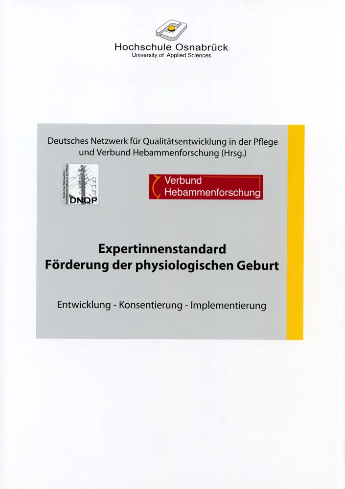 Die Entwicklung der Expertenstandards für eine physiologische Geburt erfolgt in Deutschland durch das Deutsche Netzwerk zur Qualitätsentwicklung in der Pflege (DNQP). Dieses Netzwerk besteht aus einer acht- bis zwölfköpfigen Expertengruppe, die aus verschiedenen Fachdisziplinen stammt, wie z. B. Gynäkologie, Geburtshilfe, Hebammenkunde, Kinderheilkunde und Pflege.
