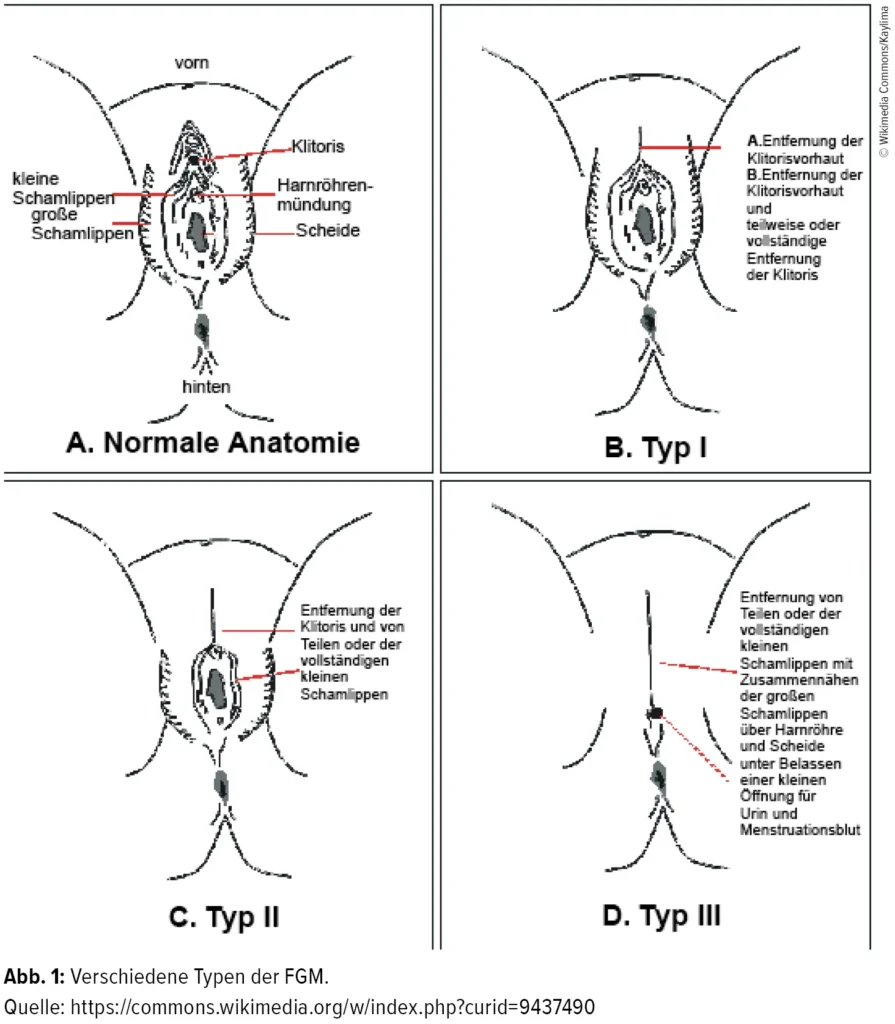 Die weibliche Genitalverstümmelung (FGD) ist eine grausame Praxis, die die Gesundheit und das Wohlbefinden von Millionen von Frauen und Mädchen weltweit beeinträchtigt. FGD umfasst alle Verfahren, die die äußeren Geschlechtsorgane einer Frau aus medizinischen Gründen nicht rechtfertigen, einschließlich der Entfernung der Klitoris und der kleinen Schamlippen (Klitoridektomie), der Entfernung der Klitoris und der kleinen Schamlippen sowie Teilen oder der gesamten großen Schamlippen (Exzision) und der Verengung des Vaginaleingangs durch Nähen (Infibulation). Diese Praktiken werden oft in jungen Jahren durchgeführt, ohne Betäubung und unter unsicheren Bedingungen, was zu schweren gesundheitlichen Folgen führt.