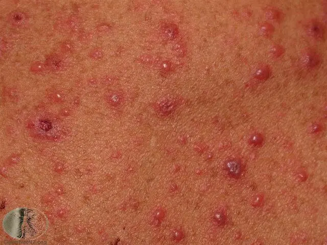 - Der Ausschlag mit Blasen oder Pusteln verbunden ist