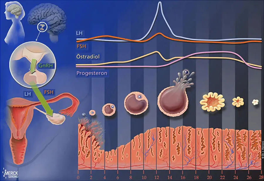 - Östrogen : Dieses Hormon ist für die Entwicklung der weiblichen Geschlechtsmerkmale, die Regulation des Menstruationszyklus und die Vorbereitung der Gebärmutterschleimhaut auf eine mögliche Einnistung verantwortlich.