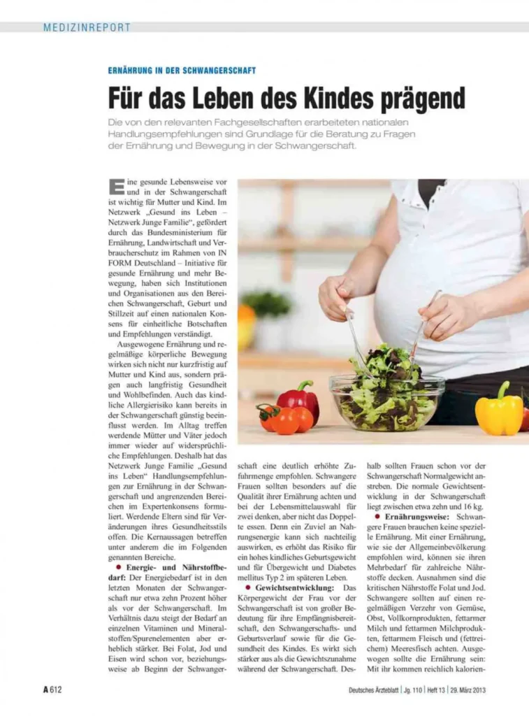 Eine gesunde Ernährung in der Schwangerschaft ist essenziell für die optimale Entwicklung des ungeborenen Kindes. Der Bedarf an wichtigen Nährstoffen wie Folat, Jod, Eisen, Vitamin D und Omega-3-Fettsäuren steigt deutlich an. Diese Nährstoffe spielen eine entscheidende Rolle für die Entwicklung des Gehirns, des Nervensystems, der Knochen und des Immunsystems des Kindes. Eine ausgewogene Ernährung kann zudem das Risiko für Komplikationen wie Schwangerschaftsdiabetes, Präeklampsie und Frühgeburt reduzieren.