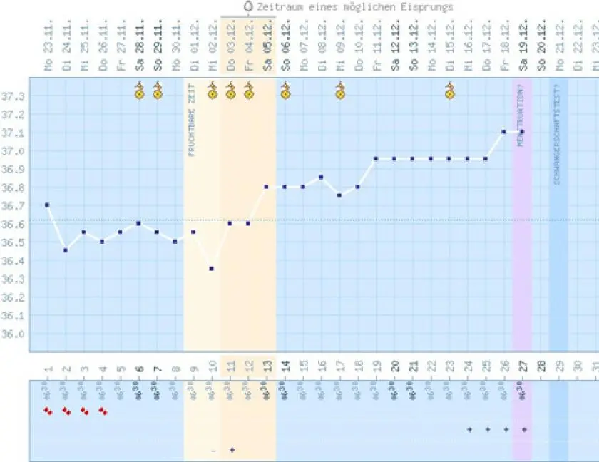 - Keine Schwangerschaftsdiagnostik: Die Basaltemperaturmethode ist keine Schwangerschaftsdiagnostik und kann nicht feststellen, ob Sie schwanger sind.
