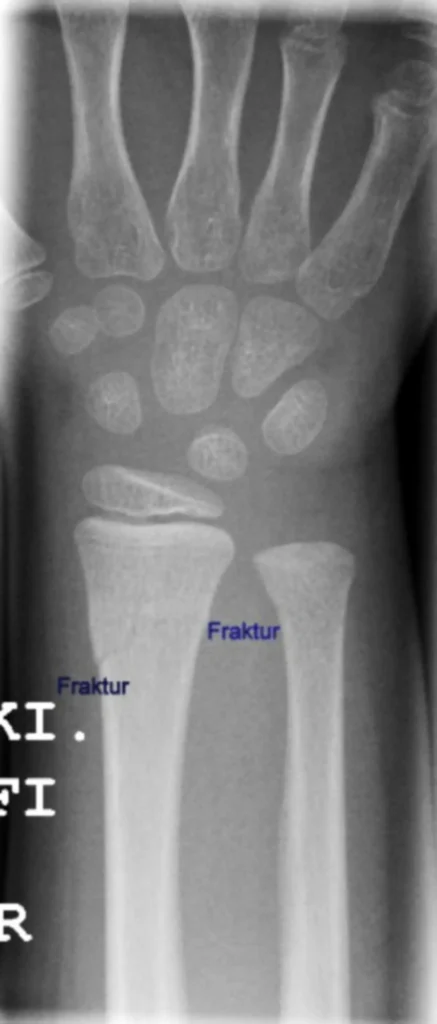 - Wachstumsschädigung : In sehr seltenen Fällen kann die Fraktur zu einer Wachstumsstörung des Knochens führen