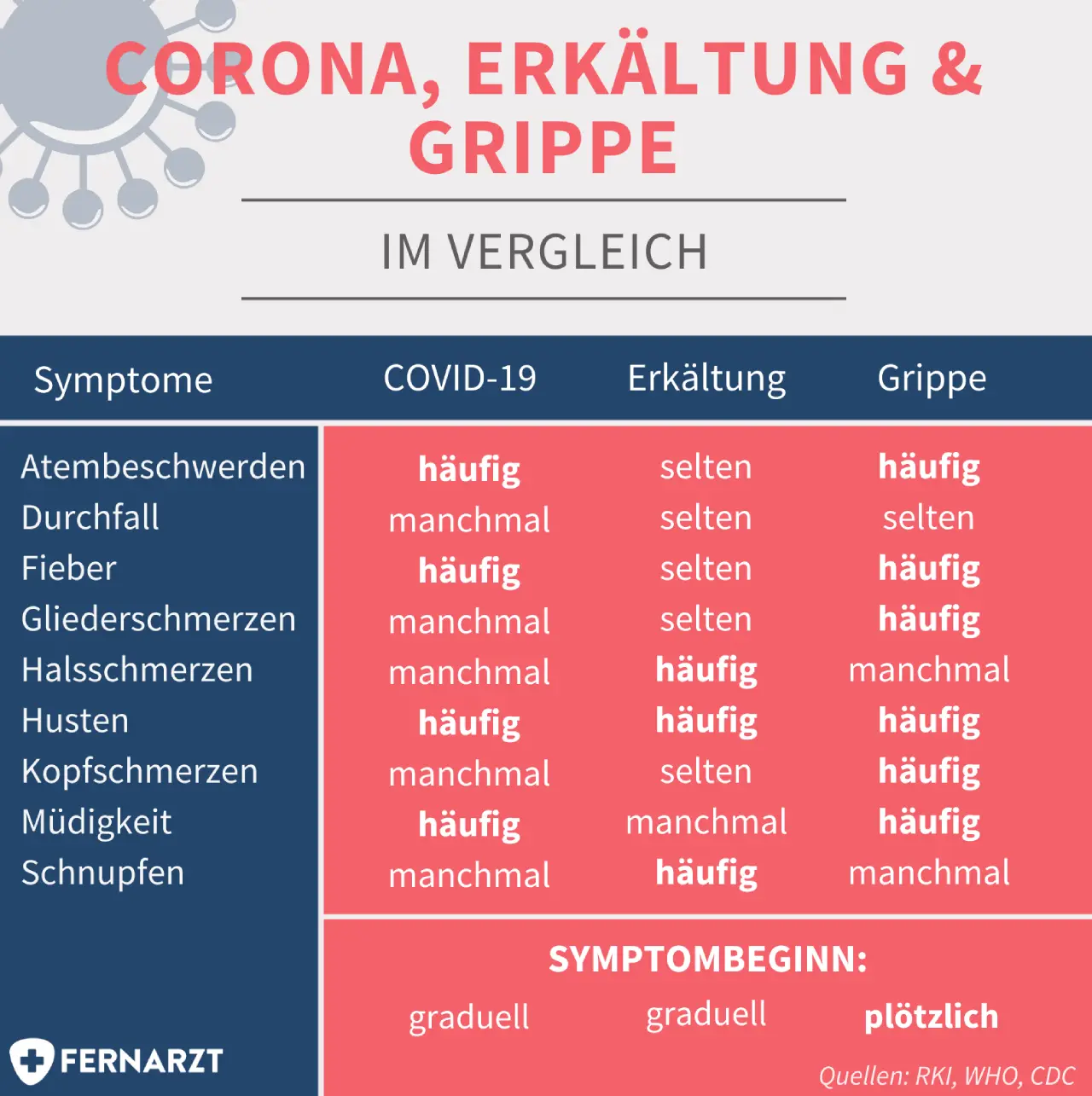 - Adenovirus : Kann zu verschiedenen Symptomen führen, darunter Fieber, Halsweh, Husten, Schnupfen und Bindehautentzündung.