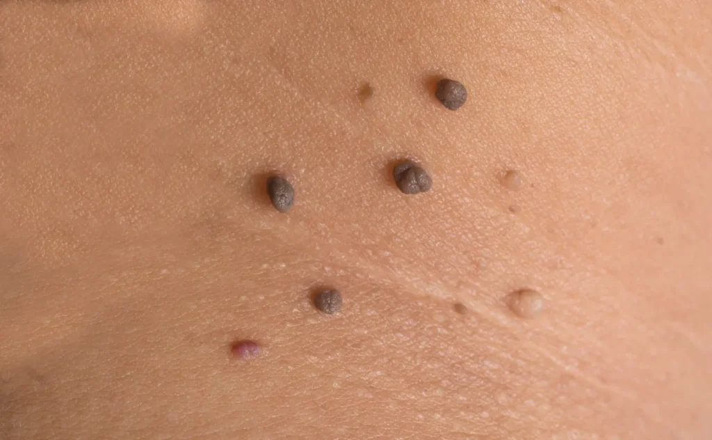 • Stielwarzen: Diese Fibrome haben einen kleinen Stiel und ragen aus der Haut heraus. Sie sind oft rundlich und haben eine glatte Oberfläche.