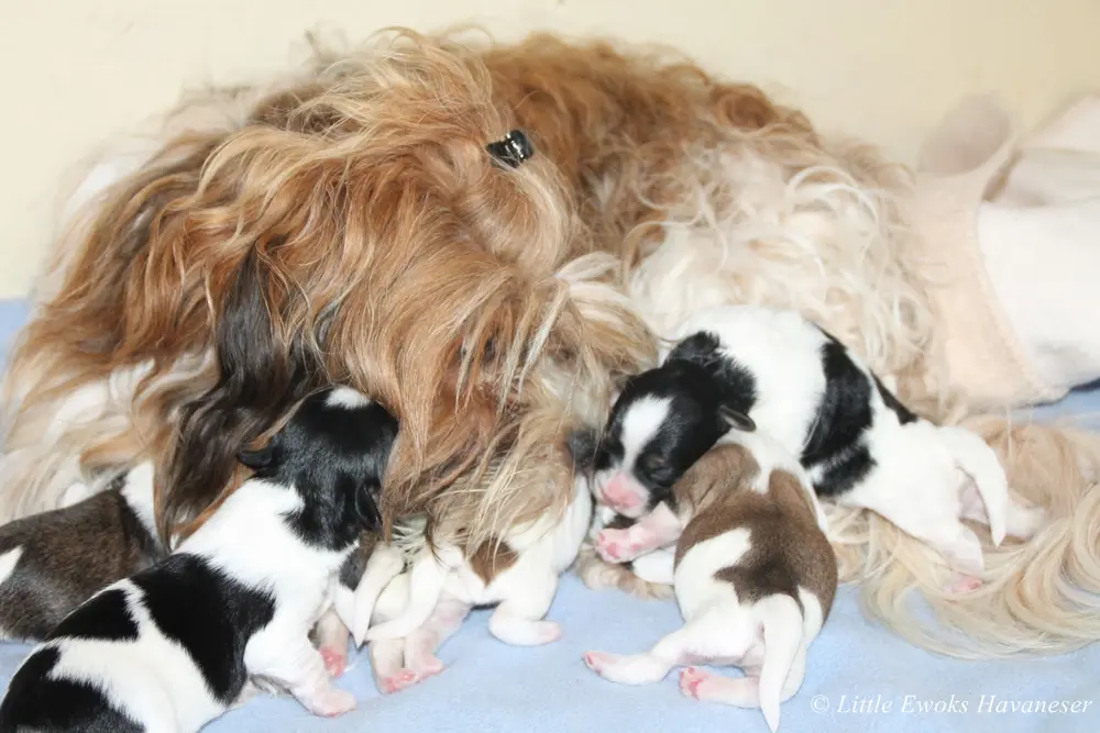 Die Havaneser-Geburt ist in der Regel unkompliziert. Die Hündin bringt ihre Welpen innerhalb von 12 bis 24 Stunden zur Welt. Die Welpen sind bei der Geburt blind und taub und brauchen die Fürsorge ihrer Mutter.