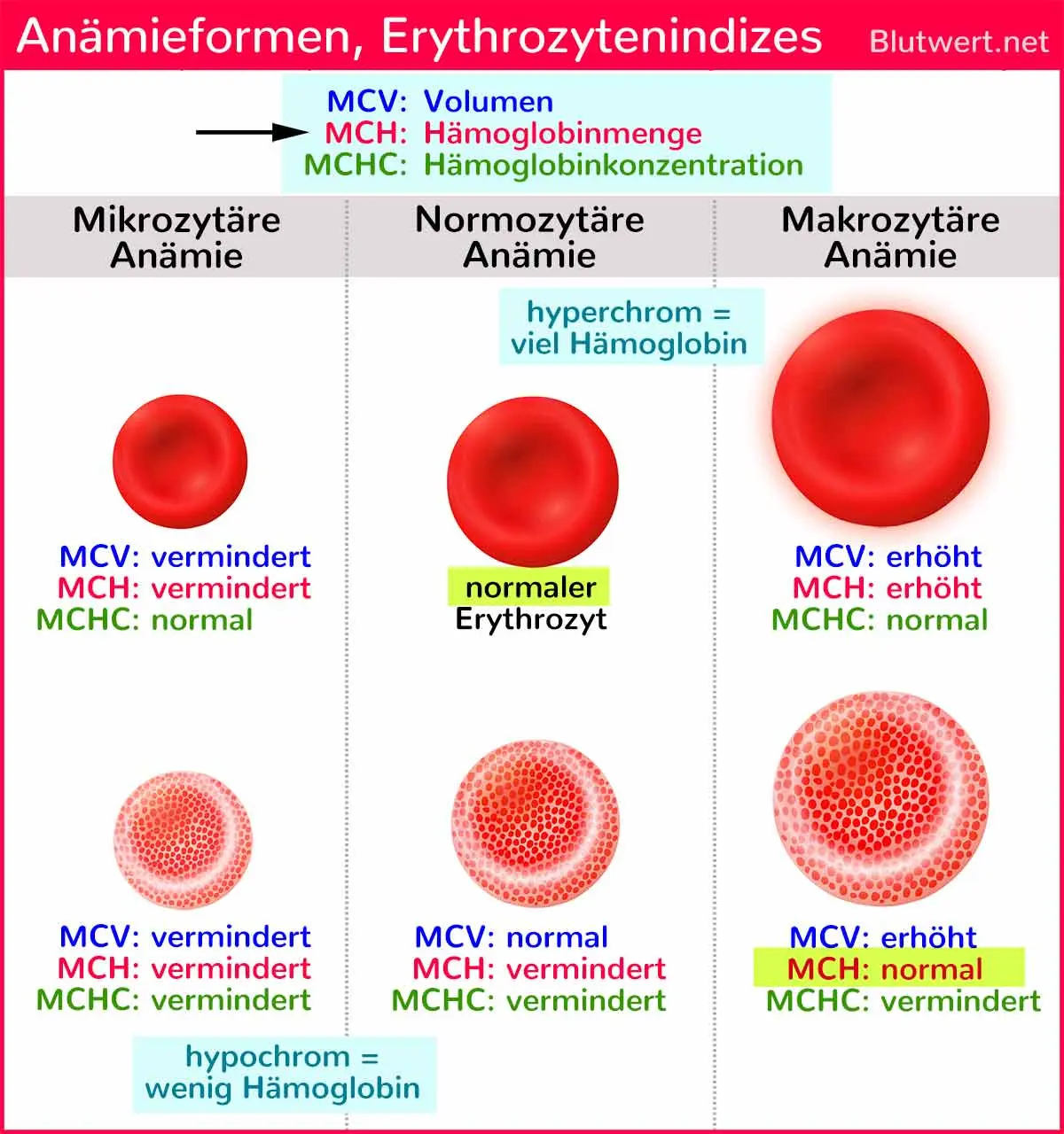 Zu niedrige HbE-Werte können auf verschiedene Arten von Anämien hindeuten, darunter: