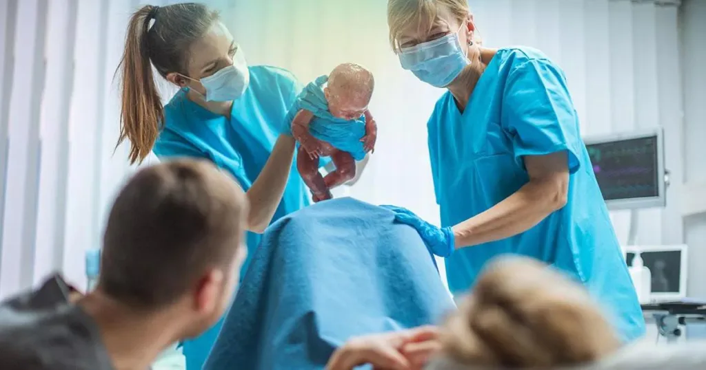 - Nachsorge: Nach der Geburt kümmert sich die Hebamme um die Mutter und das Neugeborene. Sie kontrolliert die Vitalwerte, versorgt die Wunde und unterstützt die Mutter beim Stillen oder der Flaschennahrung.
