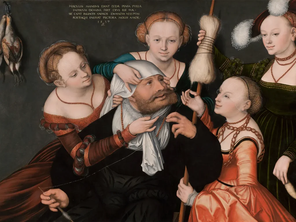 Trotz seiner Stärke und seiner Heldentaten war Herakles ein Mensch mit Schwächen und Leidenschaften. Er verliebte sich in die Königin Omphale, die ihn als Sklaven gefangen hielt. In dieser Zeit wurde er von seinem eigenen Stolz und seiner Trauer gequält. Er musste seine Identität und seine Würde aufgeben und Frauenkleider tragen. Diese Episode zeigt, dass auch ein Held wie Herakles unter den Launen des Schicksals leiden kann und dass die Liebe ihn genauso verletzlich machen kann wie jeder andere Mensch.