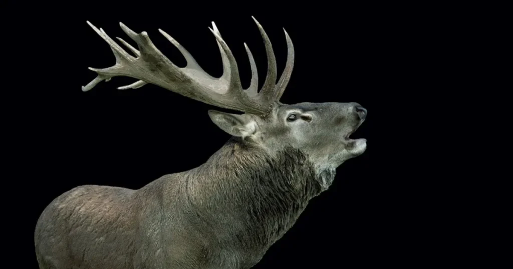 - Brunftruf: Die Hirsche stoßen lautstarke Brunftrufe aus, um andere Hirsche zu warnen und die Weibchen anzulocken.