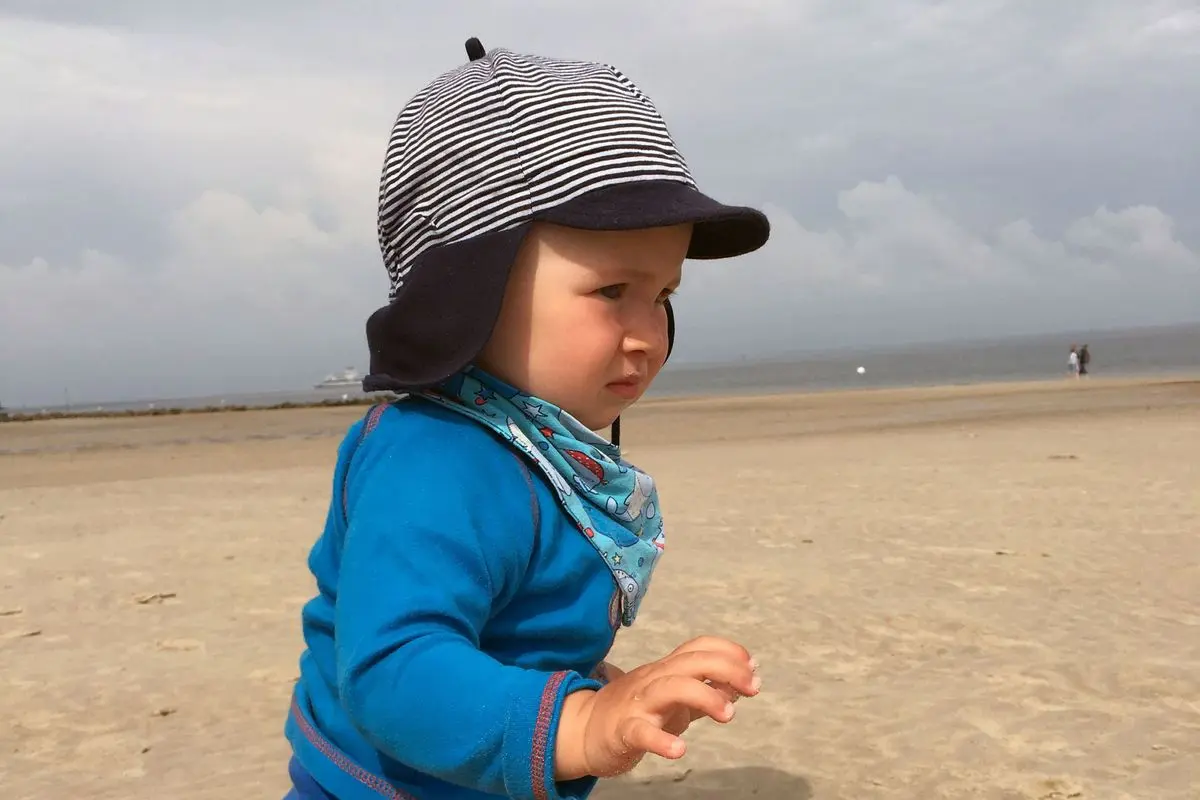 - Ziehen Sie Ihrem Baby einen Sonnenhut auf, der seinen Kopf und Nacken schützt.