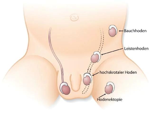 - Kanalhoden: Der Hoden befindet sich im Leistenkanal.