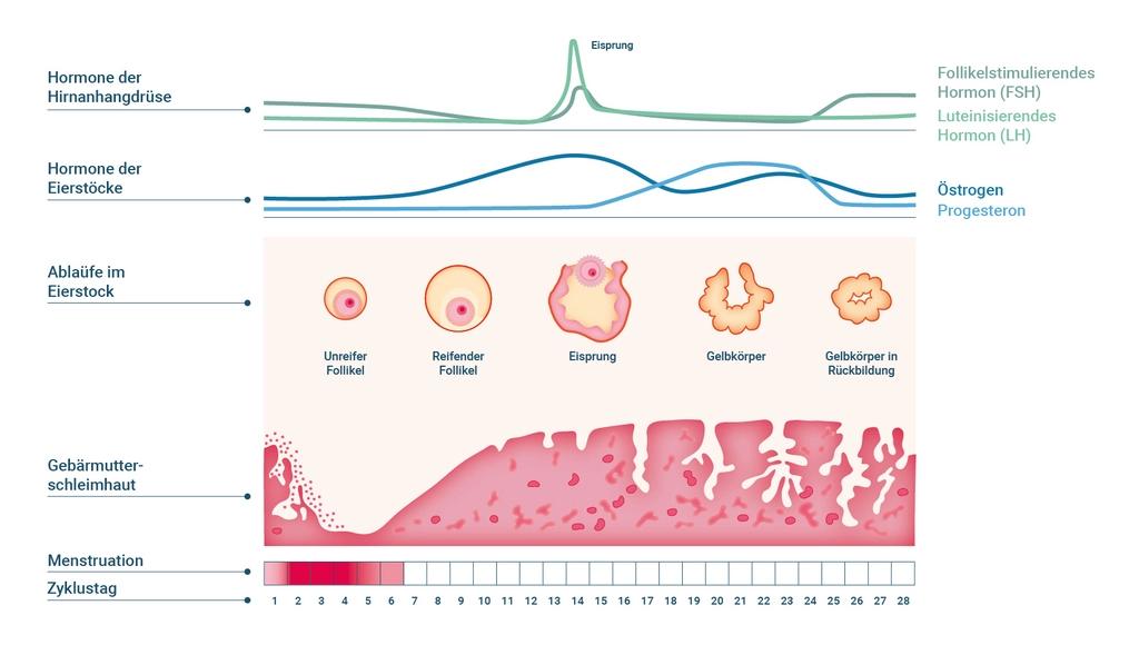 - Prolaktin : Prolaktin ist das Hormon, das die Milchproduktion stimuliert. Nach der Geburt steigt der Prolaktinspiegel an, um die Milchbildung zu fördern. Dieser erhöhte Prolaktinspiegel kann zu einer Unterdrückung der Menstruation führen.