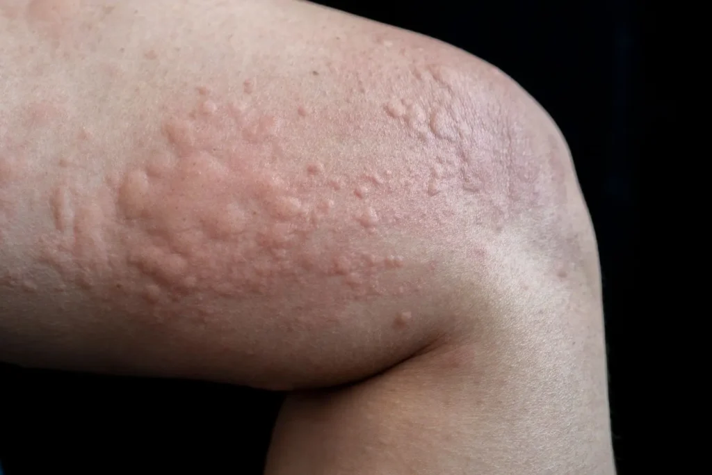 Allergische Reaktionen auf bestimmte Stoffe wie Pollen, Tierhaare, Lebensmittel oder Medikamente können zu Juckreiz und Ausschlag führen. Die Reaktion kann sich in Form von Nesselsucht (Urtikaria), Ekzemen oder Kontaktdermatitis manifestieren. Allergische Reaktionen sind oft durch einen plötzlichen Beginn und eine schnelle Ausbreitung des Ausschlags gekennzeichnet.