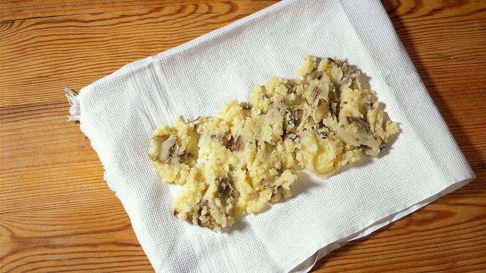 - Die Kartoffeln leicht mit der Hand zerdrücken.
