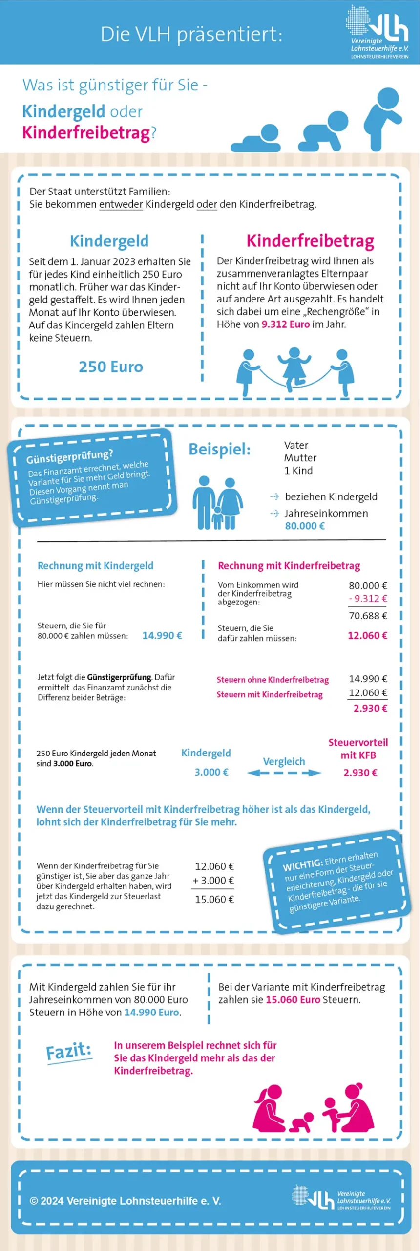 Beispiel: Ihr Kind kommt im Dezember zur Welt. Sie erhalten den Kinderfreibetrag für das gesamte Jahr, also auch für die Monate Januar bis November. Der Kinderfreibetrag wird Ihnen dann im Nachhinein ausgezahlt.