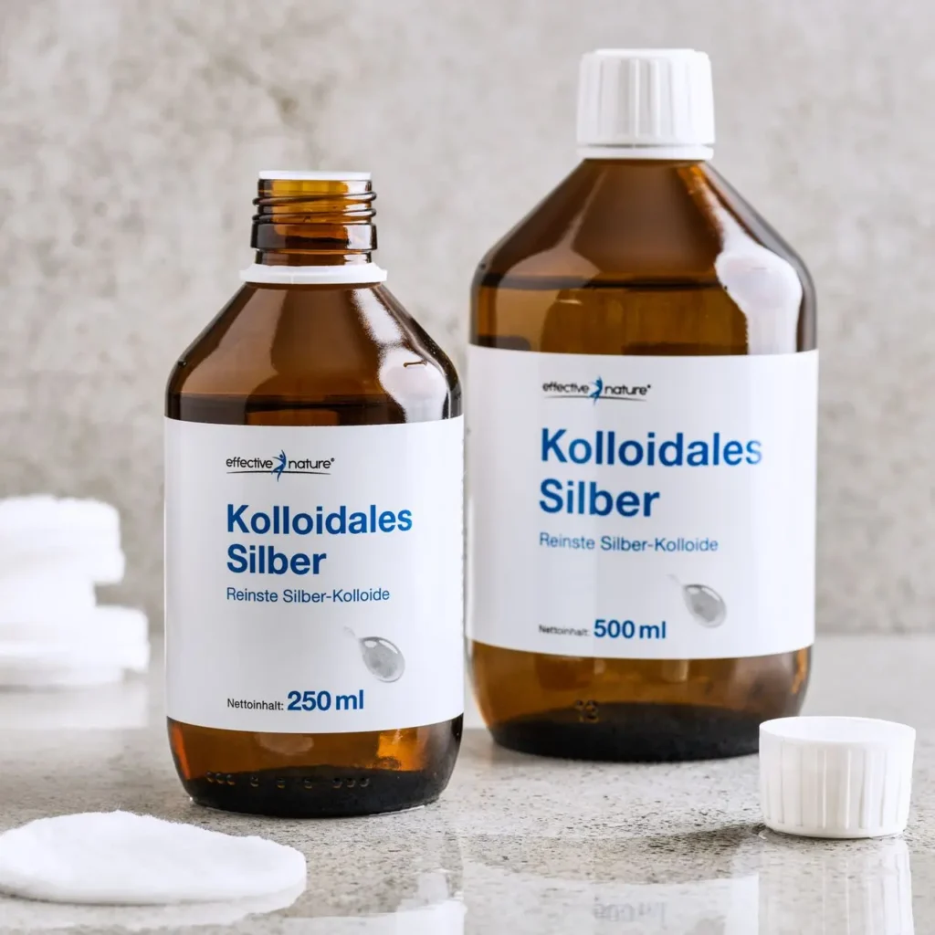 Kolloidales Silber ist eine Suspension von winzigen Silberpartikeln in einer Flüssigkeit, in der Regel destilliertem Wasser. Diese Partikel sind so klein, dass sie im Wasser fein verteilt sind und nicht ausfallen. Die antimikrobielle Wirkung von kolloidalem Silber beruht auf der Fähigkeit der Silberpartikel, Bakterien, Viren und Pilze abzutöten. Diese Eigenschaft macht es zu einem beliebten Mittel zur Behandlung von Infektionen und zur Unterstützung des Immunsystems.