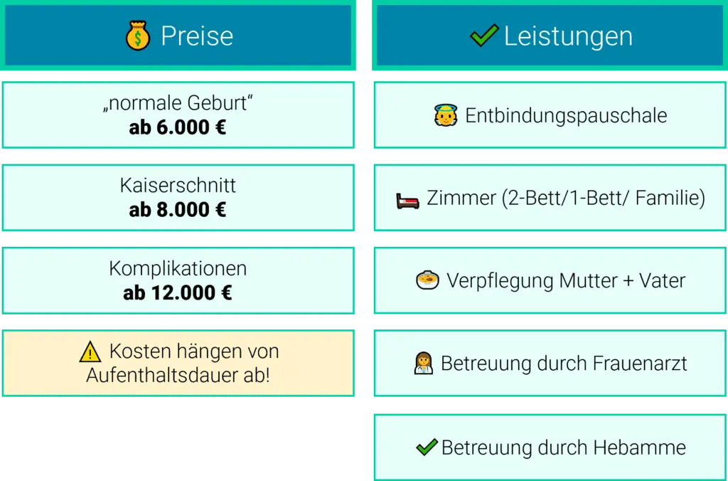 - Wie hoch sind die Kosten für eine Geburt als Privatpatient?