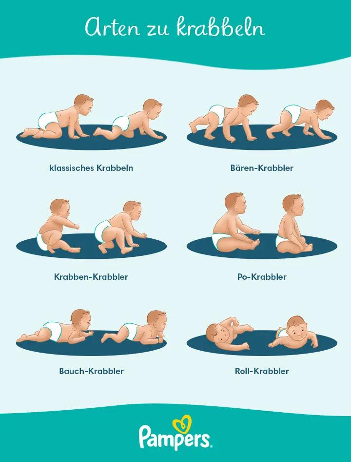 Es gibt kein festes Alter, in dem ein Baby mit dem Krabbeln beginnen sollte. Die meisten Kinder beginnen zwischen dem und Monat mit dem Krabbeln. Manche Babys beginnen schon früher, andere etwas später.