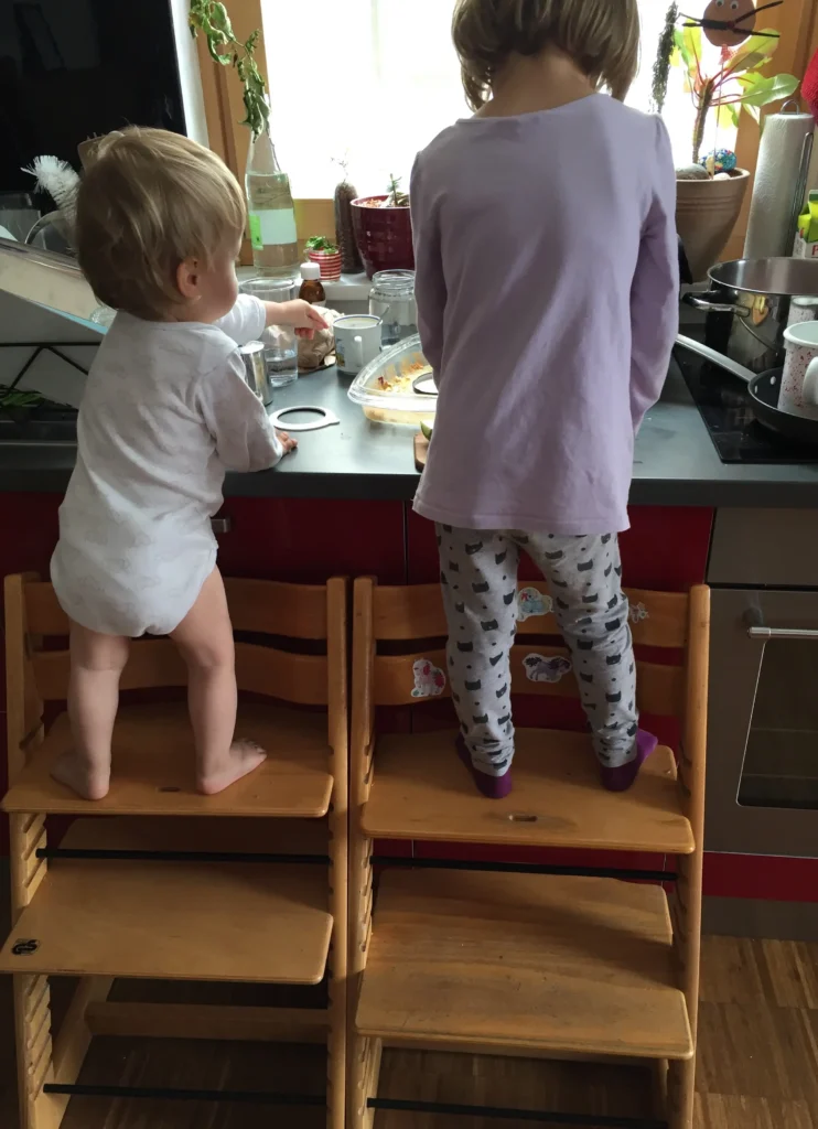 - Steigert die Neugierde und das Interesse: Durch die erhöhte Sicht und die Möglichkeit, aktiv zu helfen, werden Kinder neugieriger und lernen spielerisch neue Dinge.