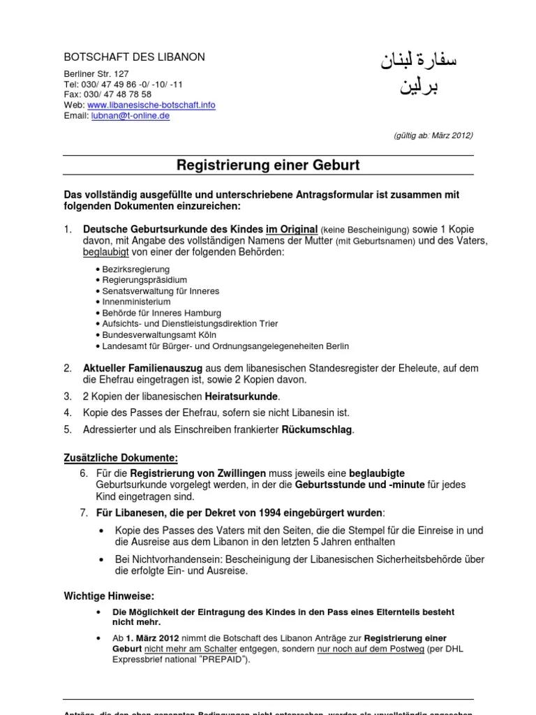 - Kann ich die Geburtsregistrierung auch bei einem libanesischen Konsulat in Deutschland vornehmen?