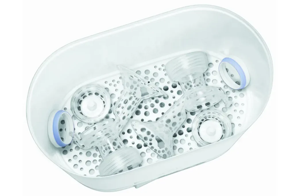 Eine Milchpumpe und ihr Zubehör kommen mit der Muttermilch in Kontakt. Diese Milch ist ein Nährboden für Bakterien, die das Baby krank machen können. Deshalb ist es wichtig, die Milchpumpe und ihr Zubehör regelmäßig zu sterilisieren, um diese Bakterien abzutöten und das Risiko einer Infektion zu minimieren.